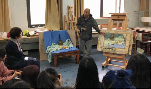 10月28日上午9时,王建彬教授在永利集团3044官网欢迎您画室做现场示范教学,从画面布局、颜色的把握到观察方法等,事无巨细、循循善诱,将学生有疑虑、不易把握内容以最通俗、最幽默的形式教授给大家,现场一度出现欢快的笑声和热烈的掌声。