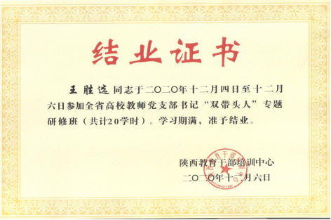 为加强永利官网党支部书记队伍建设,提升“双带头人”支部建设能力,推动基层党建工作和教学科研工作双促进双提高,永利官网选派教工一支部书记王胜选副教授参加陕西教育干部培训中心举办的全省高校教师党支部书记“双带头人”专题研修班。