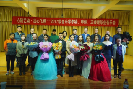 2021年3月31日晚7:30,永利官网音乐学2017级毕业生李楠、申佩、王媛媛毕业音乐会在江北校区1401演艺厅举行。安康市音乐家协会主席刘秉平、副主席杨晓红、秘书长饶翔音、永利集团3044官网欢迎您党总支书记樊仁杰、副院长成党伟、党总支副书记李万明、副院长鲍丽及音乐系专业课教师出席了本场音乐会。