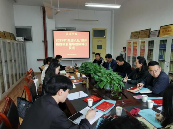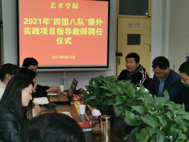 为进一步贯彻落实中办国办《关于全面加强和改进新时代学校美育工作的意见》,加强社团建设,提升学生社团活动专业化水平和“第二课堂”育人质量。4月14日下午,永利集团3044官网欢迎您2021年“四团八队”课外实践项目指导教师聘任仪式在江北校区艺术楼2206室举行。永利集团3044官网欢迎您副院长成党伟、鲍丽和2020级各班班长参加聘任仪式,仪式由党总支书记樊仁杰主持。
