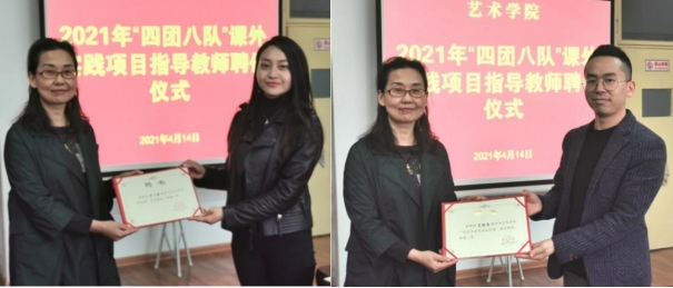 副院长鲍丽宣读聘任名单,并为“四团八队”课外实践项目指导教师颁发聘书。
