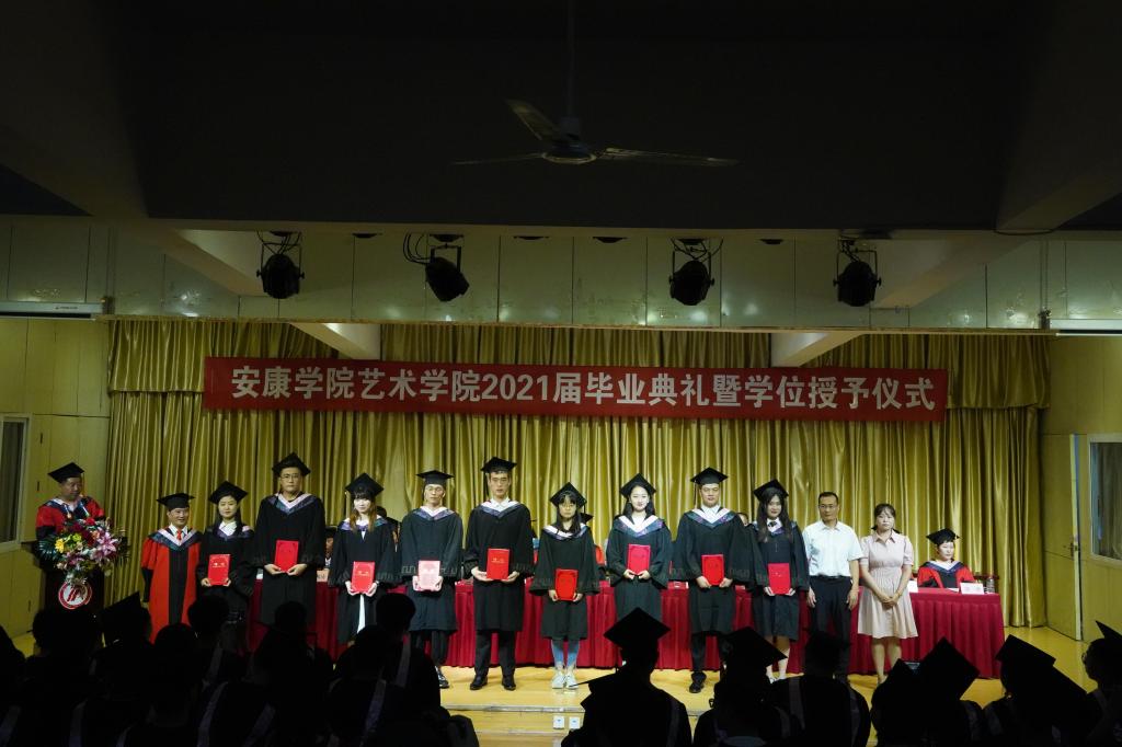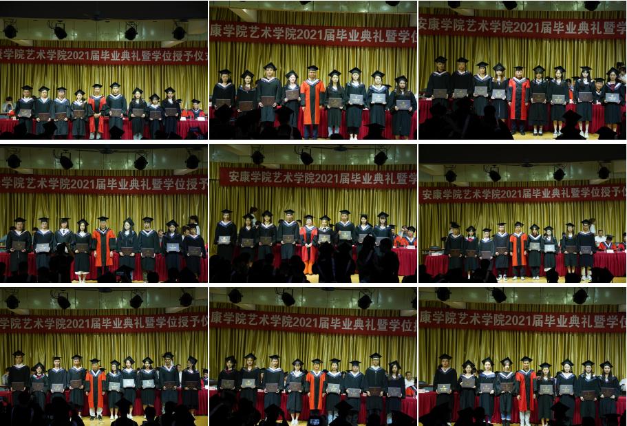 在学位授予仪式上,永利集团3044官网欢迎您学位授予导师分别为2021届音乐学、美术学和视觉传达设计专业的毕业生拨穗、颁发学位证书,并合影留念。