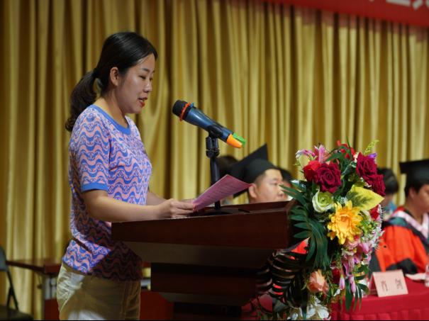 2021届视觉传达设计专业毕业生王淇代表毕业生对学校及老师的培养表示感谢,一定铭记老师们的殷切希望和深情嘱托,做胸怀大志、脚踏实地之人,成就更好的自己,为母校争光添彩。
