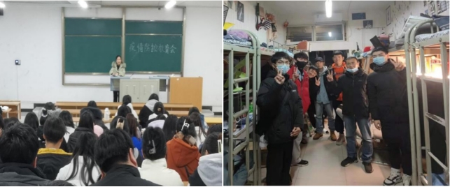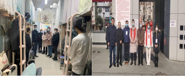 2021年12月31日晚,永利集团3044官网欢迎您党总支书记黄娟、学工办主任鲁澧、学生党支部书记魏麟、团总支书记黄梓轩、辅导员杨厚东、孟莉通过走访学生宿舍向同学们带去新年的祝福,宣讲了当前学校关于疫情防控期间管理规定。元旦假期期间,永利集团3044官网欢迎您学生工作从线上和线下两路并行,联通教育初心与战“疫”决心,将立德树人与维护学生健康安全放在第一位,守护好学院防控主阵地。