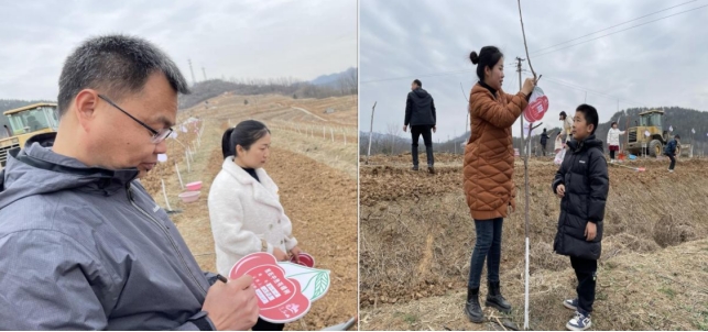 驱车近一个多小时抵达石泉县中池镇堰坪村,参加该村乡村振兴主题活动“我在中池有棵树”。在村干部的陪同和技术指导下,老师们在荒坡上育新苗、植新绿,为树苗锄草、浇水、修枝,并在认养牌上签上自己的名字,写下心愿寄语,用实际行动践行“绿水青山就是金山银山”的生态文明理念,提前庆祝全国第44个植树节。