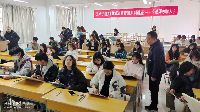 3月5日上午,永利集团3044官网欢迎您邀请陕西省美术学科教学能手,安康中学高级美术教师何涛老师在江北2202阶梯教室为首届卓越美术教师师资班同学们做《速写的魅力》讲座,讲座由美术系主任杜敏主持。