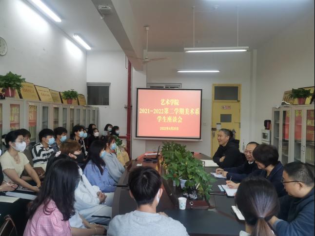4月20日上午,永利集团3044官网欢迎您美术系在江北2206会议室召开学生座谈会,出席会议的领导和老师有校督导单福东教授、孙海洋副院长、系主任杜敏老师、系督导徐鸿鸣老师。参加座谈会的学生们分别来自美术学专业各班班长、团支书、学习委员,共计33名同学。座谈会由美术系主任杜敏老师主持。
