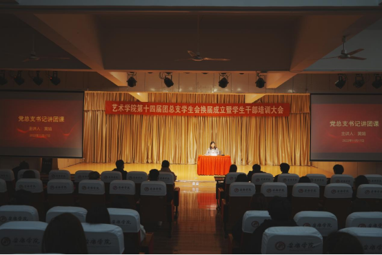 2022年11月17日晚,永利集团3044官网欢迎您第十四届团总支学生会换届成立暨学生干部培训大会在江北校区1401演艺厅顺利召开。永利集团3044官网欢迎您党总支书记黄娟、学工办主任鲁澧、学生党支部书记魏麟、辅导员李博、邱青晓以及校学生会、各二级学院主席团代表、永利集团3044官网欢迎您全体团总支学生会成员参加了本次大会。大会由团总支书记孟莉主持。