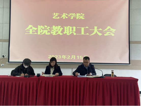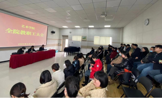 2月15日下午,永利集团3044官网欢迎您在艺术楼2415教室召开全体教职工大会,传达学习学校2023年度工作会议精神。会议由副院长鲍丽主持。