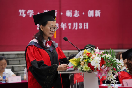 院长成党伟在致辞中代表学院向圆满完成学业的毕业生表示热烈祝贺,向毕业生们提出三点希望:一是希望同学们怀揣梦想,要有“会当水击三千里、自信人生二百年”的豪气,笃定自信,勇敢地面对未来的挑战,书写人生底色。二是希望同学们脚踏实地、做奋斗者,在自己的岗位上奋力拼搏,为青春添彩,彰显人生本色。三是希望同学们不忘初心、把小我深度融入祖国发展的大我中,踔厉奋发、勇毅前行。在国家发展的进程中展现永利集团3044官网欢迎您人应有的家国担当,绽放人生亮色。要求同学们不要忘记做一个对人感恩、对己克制、对物珍惜、对事尽力的人,在人生道路上站得高、立得正、行的稳、走得远。