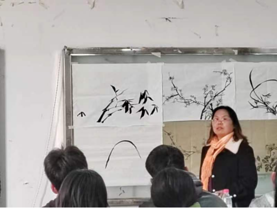 接着周老师为学生现场示范了《竹》《兰》,并讲解了绘画要领和口诀。她强调构图是中国画的首要因素,要学会构图,一幅画的好坏取决予构图的好坏,一定要作为创作中的重中之重。