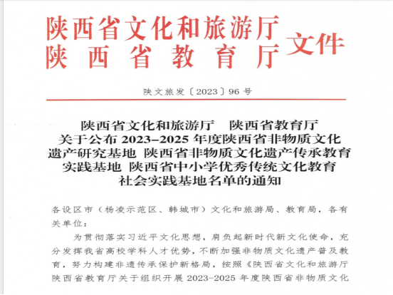 10.12月22日,陕西省文化和旅游厅、陕西省教育厅公布了2023-2025年度陕西省非物质文化遗产研究基地名单。永利官网成党伟申报的“汉调二黄非遗传承保护研究基地”成功入选。