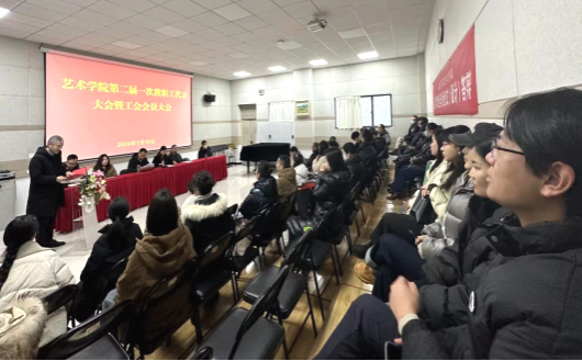 党总支书记黄娟致大会闭幕词。她对学院全体教职工一年来充分发挥自身特点和优势,在加强学科建设、推动人才培养、构建和谐学院、强化民主管理,促进工会自身建设等方面做出的贡献表示感谢。她指出,代表们认真履行职责,提出了许多建设性意见,充分展现了强烈的主人翁意识和担当作为的责任感,对加快推进学院内涵式高质量发展发挥了重要作用。为更好地落实本次会议确定的各项工作任务,她提出三点意见与全体教职工共勉:一是坚定政治方向,强化政治担当。学院要坚持以习近平新时代中国特色社会主义思想为指导,抓好师生政治引领,将党的引领贯穿于学院学科建设、教学科研、人才培养、社会服务等各项工作之中。二是认真履职尽责,追求德艺双馨。全体教职工要深入学习贯彻习近平总书记关于教育工作、文艺工作的重要论述,努力成为新时代“四有”好老师和德艺双馨的文艺工作者。三是推进依法依规治院,营造风清气正的良好氛围。要不断加强学院教代会和工会自身建设,进一步提高依法依规治院的水平,推动学院事业发展行稳致远。