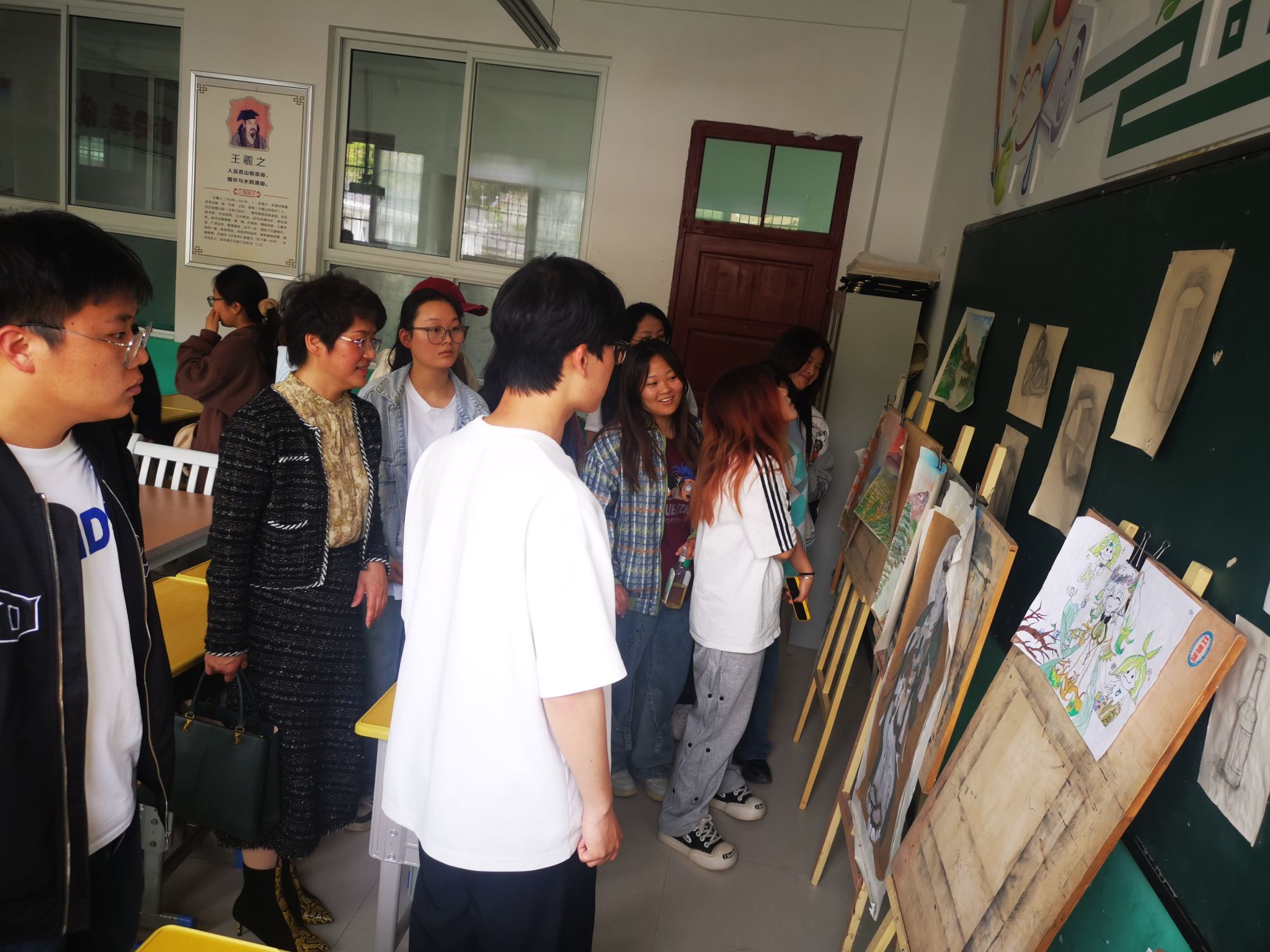 活动伊始,美术系主任杜敏,教师毛德龙带领学生前往岚皋县花里初级中学,参观校园,了解花里中学校情及美育课程建设情况。师生走进美术教室,观摩教学过程,与花里初级中学师生们进行了互动交流。通过近距离接触,学生们感受到了基础教育对中学生成长的重要性,同时也对美育教育的责任感有了更为深刻的认识,激发了他们对服务基础教育工作的热爱与责任感,促进了同学们投身基础教育教育情怀的培养。