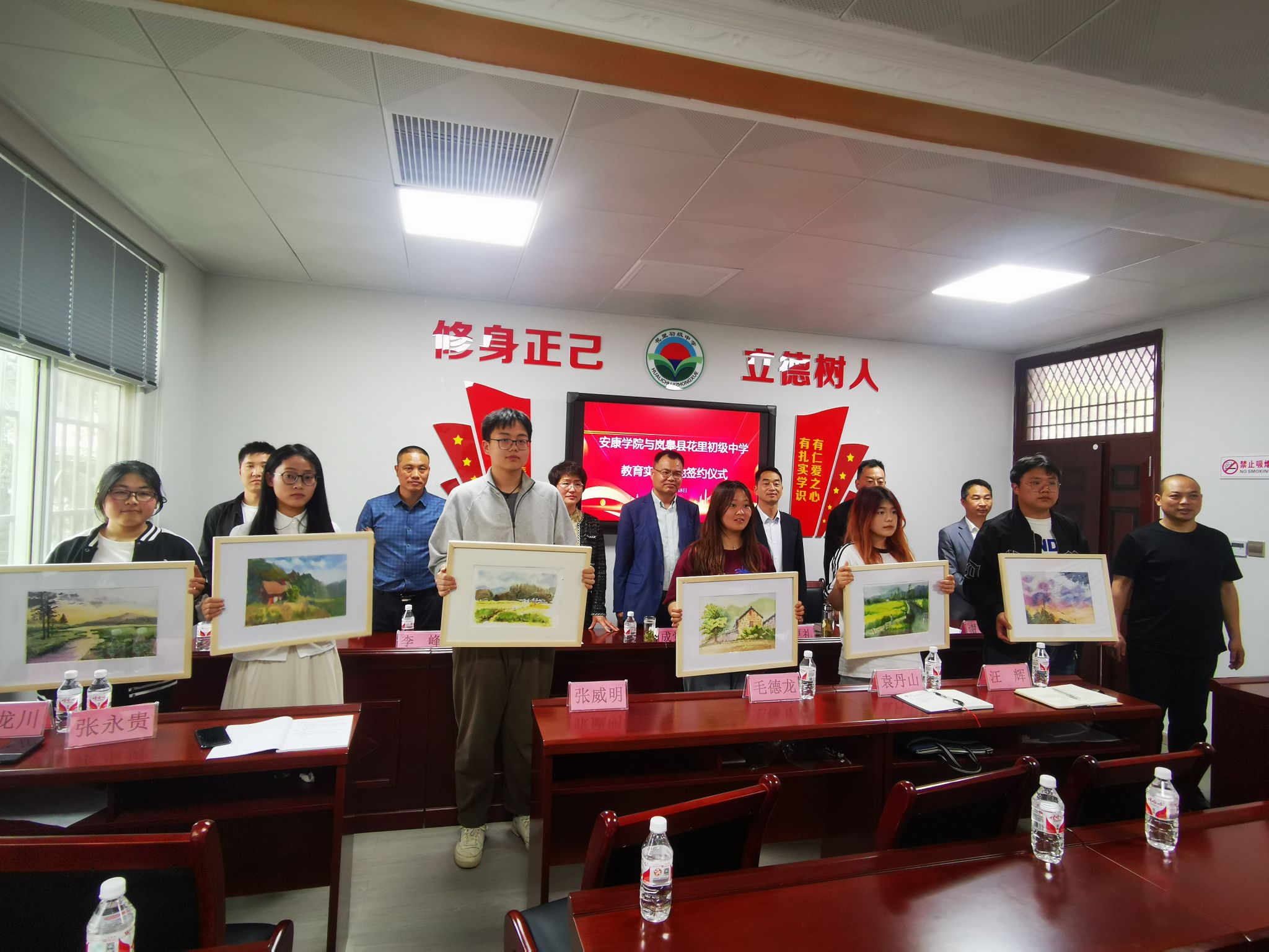 随后,永利集团3044官网欢迎您与岚皋县花里初级中学举行了美育实践基地签约仪式,永利集团3044官网欢迎您院长成党伟和岚皋县花里初级中学校长狄邦银代表双方签约,岚皋县教育体育科技局教育衔接办主任丁更礼见证签约,活动由花里中学政教主任谢战主持。双方就共同促进美育工作签订了美育实践基地共建协议。活动中,永利集团3044官网欢迎您12位同学把第一批12幅美术写生作品捐赠给花里初级中学作为美育教学资源。