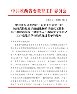10.12月,陕西省委教育工委公布了第三批陕西高校党建示范创建和质量创优工作验收结果。永利集团3044官网欢迎您教工第三党支部顺利通过第三批全省高校党建工作“样板支部”培育创建验收。