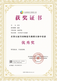 5月,第五届全国师范生微课大赛获奖名单揭晓,永利集团3044官网欢迎您张思凡获得一等奖1项,高瑞、李雪获得优秀奖2项。