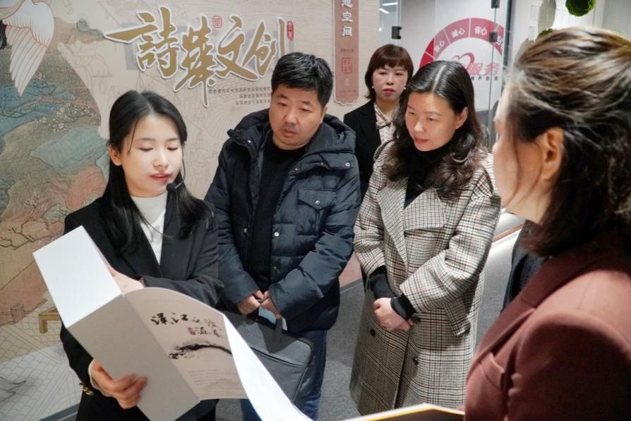 在企业相关负责人的陪同下,黄娟一行首先参观了以安康文化为背景打造的企业文化展厅——诗华文化城市文创会客厅。通过沉浸式的体验和详尽的讲解,深入了解了诗华文化在文化传承、文化创意、文化空间、文化交流、营销策划和文旅融合等领域的创新成果和应用案例,为永利官网一行呈现了设计行业打造复合型文化综合体的未来图景。