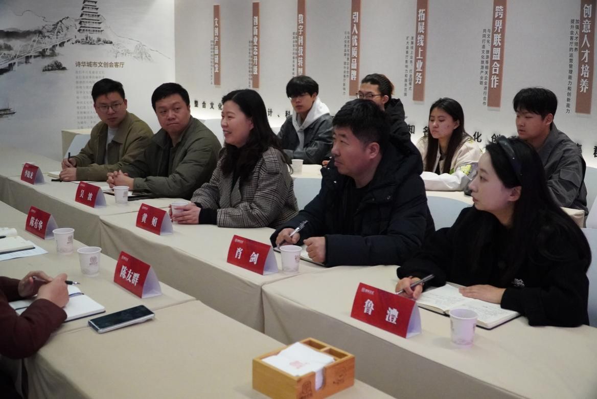 参观结束后,双方进行了座谈交流。陈有华对永利官网一行的到访表示热烈欢迎,并介绍了诗华文化在艺术设计领域的技术优势和成功案例。她表示,诗华文化一直致力于推动文化创意设计与文创产品开发的数字化转型,并积极参与高校人才培养工作。她希望通过与学院的合作,能够将行业最新技术和实践经验引入高校课堂,培养出更多适应时代发展需求的高素质设计人才。黄娟在交流中指出,在数智化浪潮重塑产业生态的当下,大数据、AI等新技术的应用倒逼课程体系重构,学院人才培养必须与以诗华文化为代表的行业领军企业开展合作,构建融合培养范式,真正打通从课堂到产业的人才供给链。