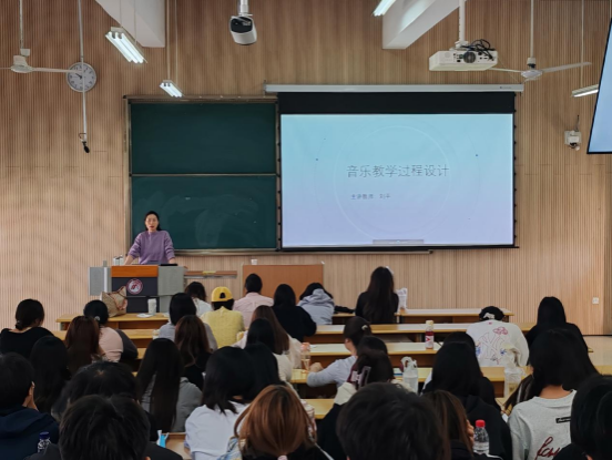 刘老师以《音乐教学过程设计》为题,围绕音乐教学的核心理念与实践方法,深入浅出地讲解了如何设计一堂生动、有效的音乐课。她通过丰富的实例和生动的讲解,展示了如何将理论知识与实际教学相结合,使学生们在轻松愉快的氛围中掌握了音乐教学设计的精髓。