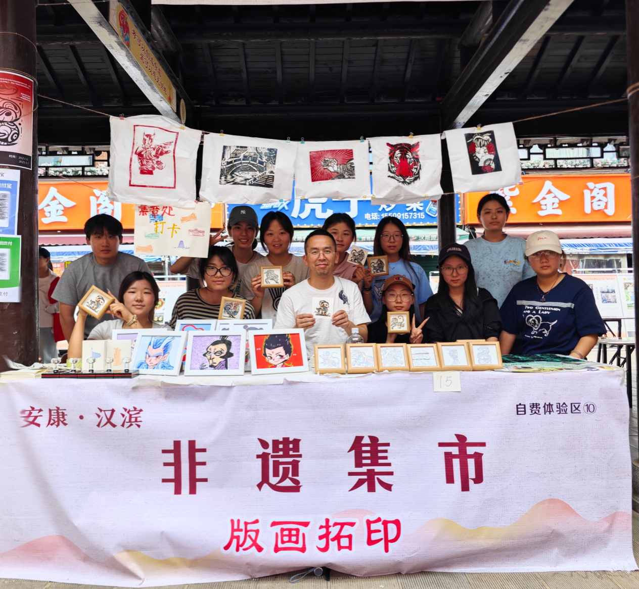 游客们在同学们的帮助下,亲手完成一幅幅独具安康特色的版画作品。当栩栩如生的山水、灵动鲜活的十二生肖图在纸上徐徐呈现,大家纷纷感叹非遗技艺的神奇魅力。一位参与体验的小朋友兴奋地说:“原来轻轻印一印就能做出这么漂亮的画,我要把自己做的版画带回家送给爸爸妈妈!”