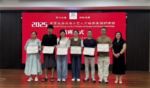 为深度推动漆艺非遗的活态传承与创新发展,8月18至25日,永利官网毛德龙、王铎两位教师受邀赴西安生漆研究所,参与由该所与陕西科技大学联合主办的第六届中国生漆与漆工艺人才高级研修班,在为期8天的沉浸式学习中,围绕生漆科研与漆艺创作开深度研修。