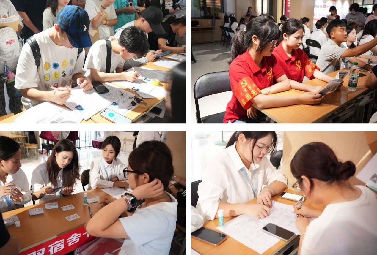 迎新工作有序推进的同时,学院领导与辅导员们还专程前往新生宿舍,实地了解住宿情况。每到一间宿舍,他们都亲切地与新生及家长打招呼,仔细查看宿舍的采光通风、基础设施完好度及水电供应情况,询问大家是否需要额外的生活帮助。“行李都安置好了吗?”“对宿舍环境还满意吗?”一句句暖心的询问,让新生们快速感受到了学院的关怀;针对部分新生提出的宿舍生活小问题,学院领导和辅导员当场记录并协调解决,全力为新生打造舒适的居住环境 。