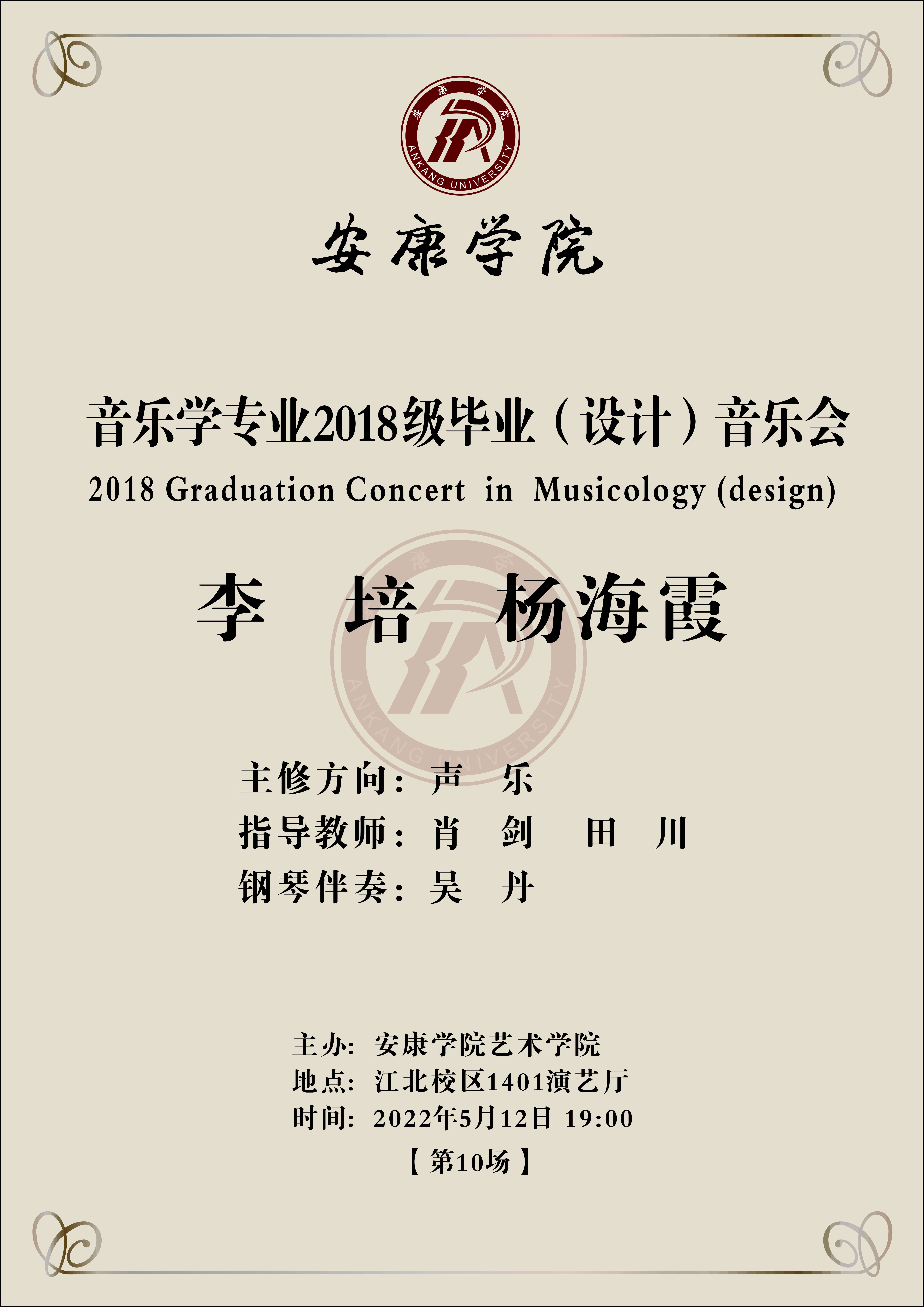 永利集团3044官网欢迎您音乐学专业2018级毕业音乐会信息(第十、十一场)