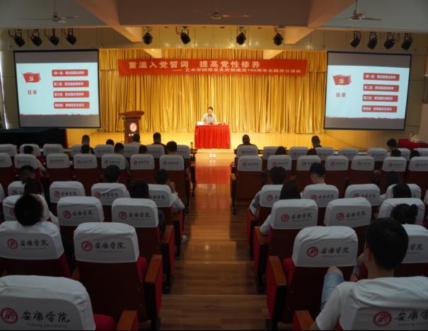 为庆祝中国共产党成立100周年,加强师生党性教育,改进学习工作作风,深入推进党史学习教育。2021年6月30日下午,永利集团3044官网欢迎您党总支在江北校区1401演艺厅开展了“重温入党誓词,提高党性修养”庆祝建党100周年主题党日活动暨党总支书记讲党史学习教育专题党课。全体师生党员、发展对象、入党积极分子及团总支、学生会主要学生干部150余人参加了活动。本次活动由党总支副书记李万明主持。