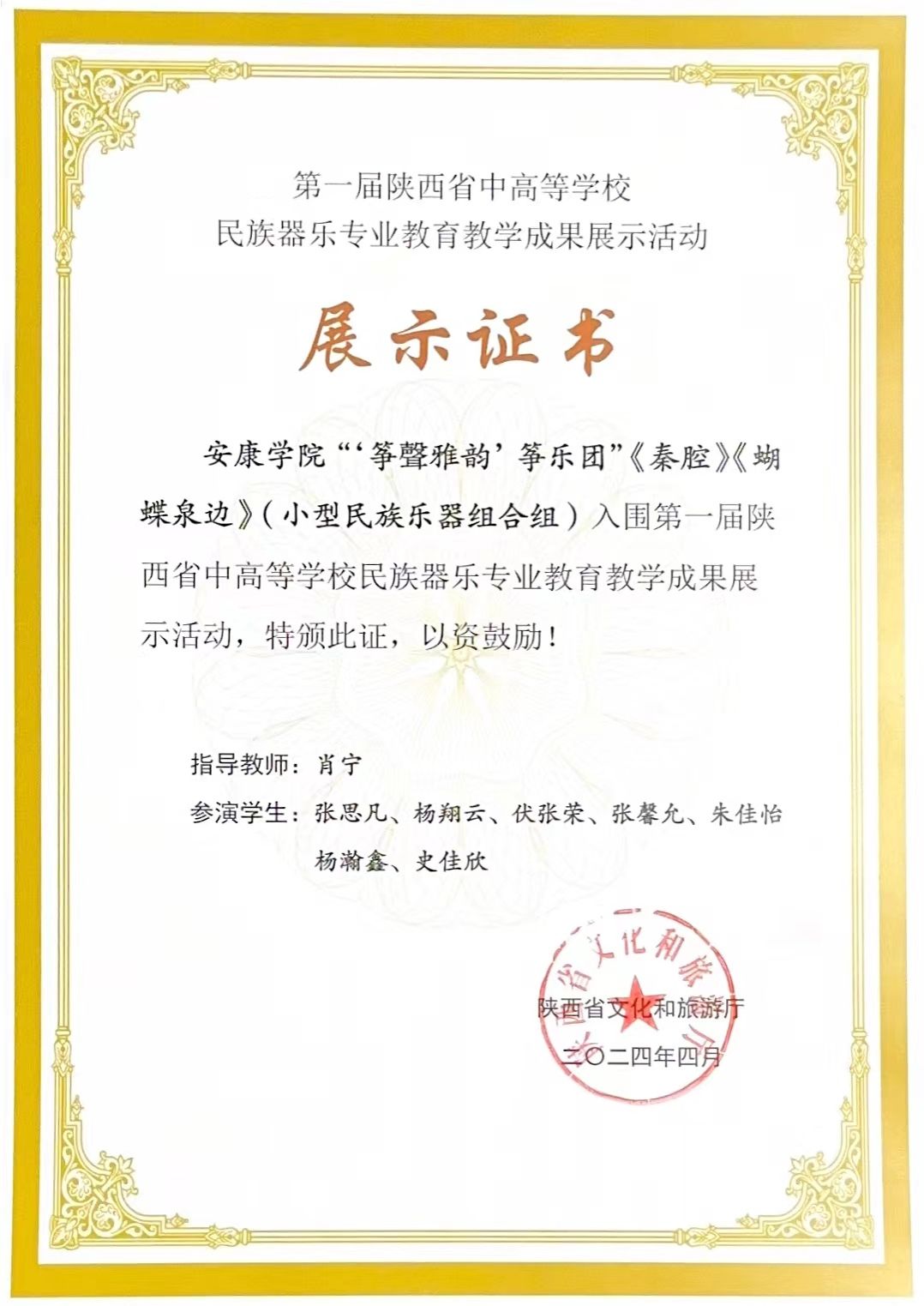 永利官网两项成果入选第一届陕西省中高等学校民族器乐专业教育教学成果展示活动