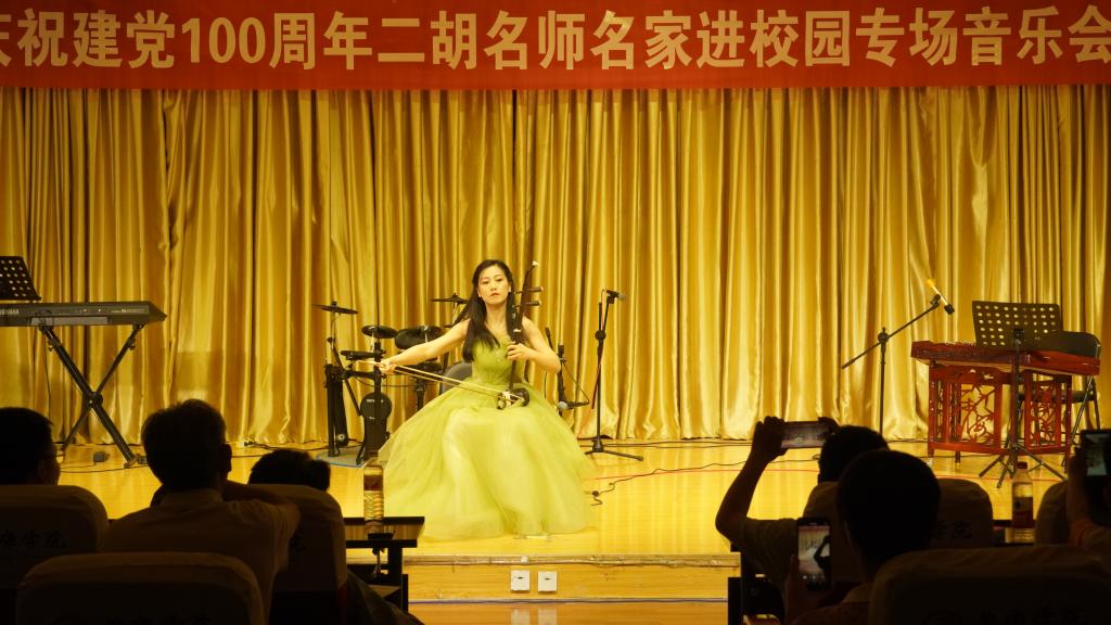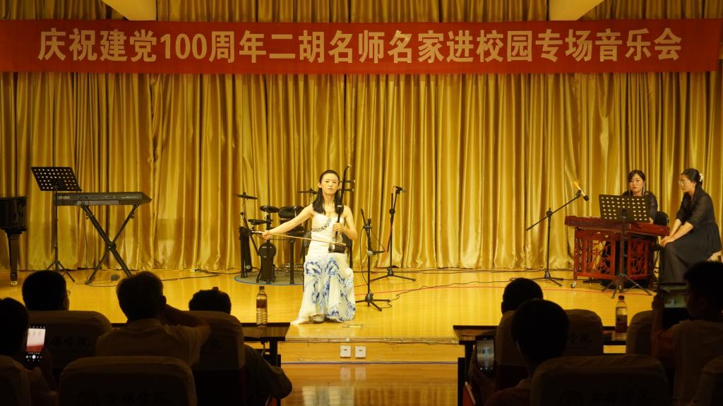 610日晚,由陕西民族管弦乐学会二胡专业委员会和我校永利集团3044官网欢迎您联合主办的“庆祝中国共产党成立100周年暨秦派二胡名师名家进校园永利集团3044官网欢迎您专场音乐会”在我校江北校区1401演艺厅成功举办,我校师生200余人聆听了音乐会。