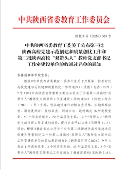 近日,陕西省委教育工委公布了第三批陕西高校党建示范创建和质量创优工作验收结果。永利集团3044官网欢迎您教工第三党支部顺利通过第三批全省高校党建工作“样板支部”培育创建验收。